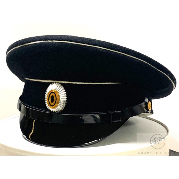 Околыш суконный чёрный с белой кантом.